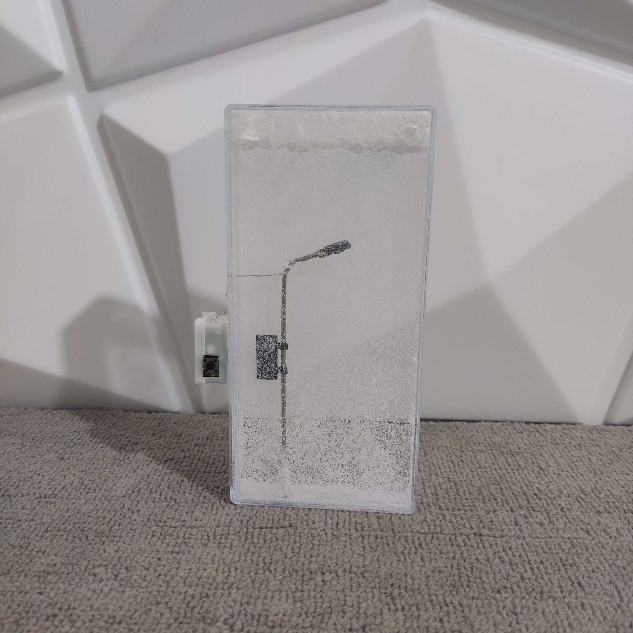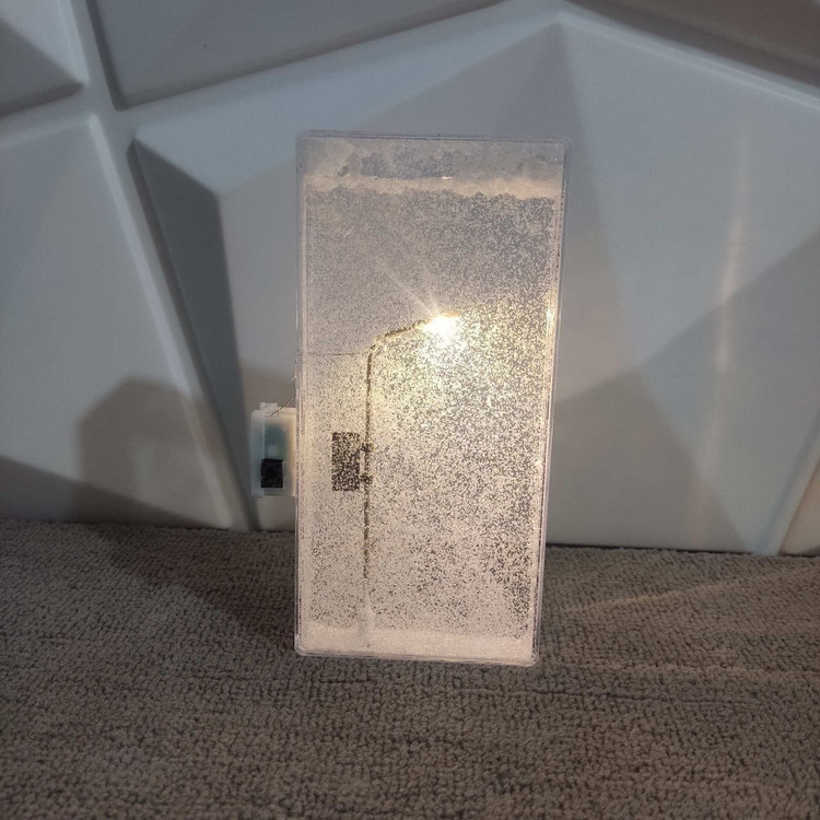 طراحی خیرهکننده: ظاهر این چراغ خواب به شکل یک جعبه شیشهای است که داخل آن منظرهای برفی به تصویر کشیده شده است.