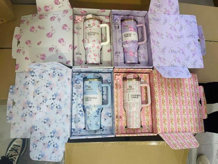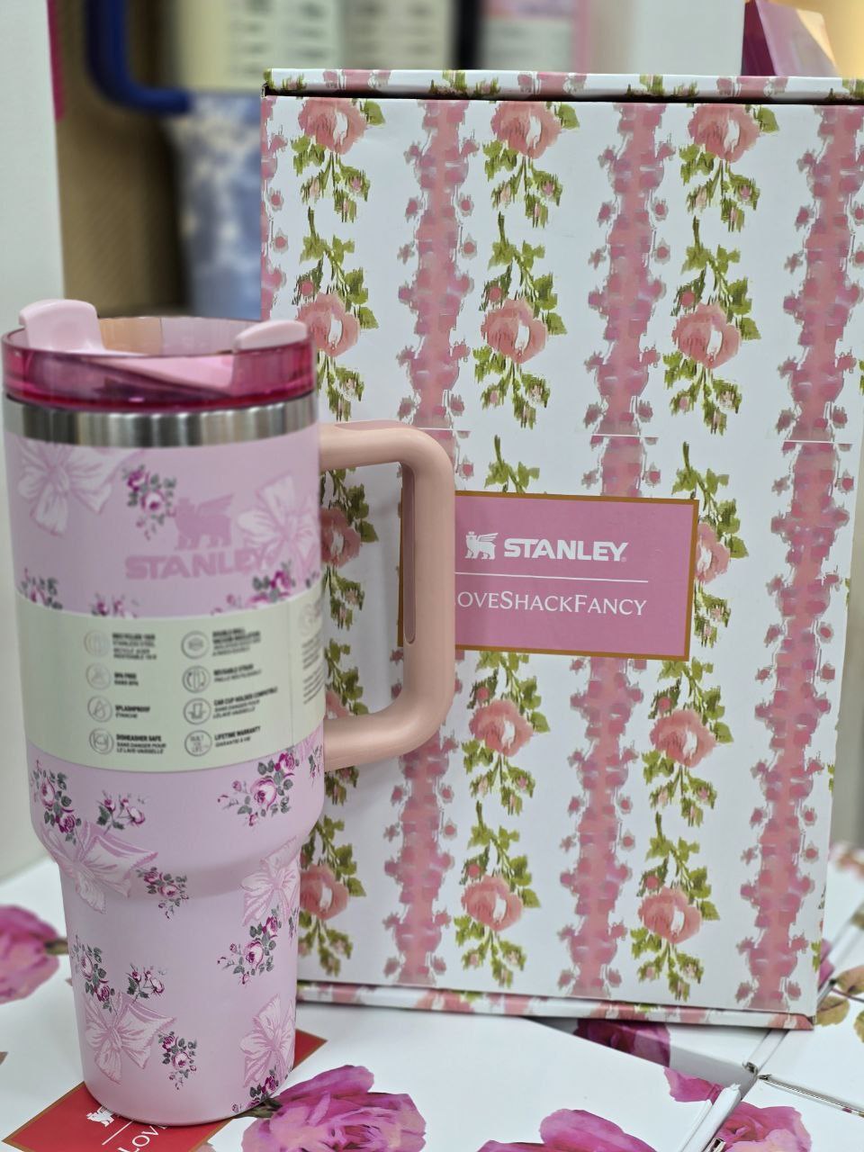 تراول ماگ استنلی طرح گل _ تامبلر استنلی طرح گل +باکس هدیه ، ماگ استنلی پاپیونی