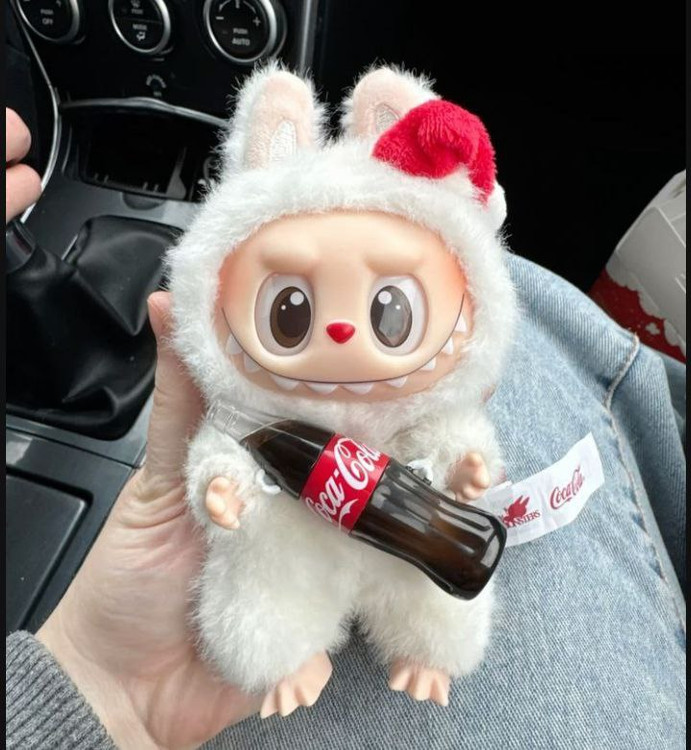 عروسک لبوبو کوکاکولا _ لبوبو کولا _ لبوبو نوشابه به دست لبوبو نشسته