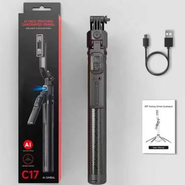 مونوپاد و گیمبال چهار پایه Ai face C17 مجهز به هوش مصنوعی، گیمبال هوش مصنوعی ، استابلایزر ( استبلایزر ) و لرزش گیر فیلم (قابلیت ردیابی چهره)/ ارسال فوری به سراسر کشور
