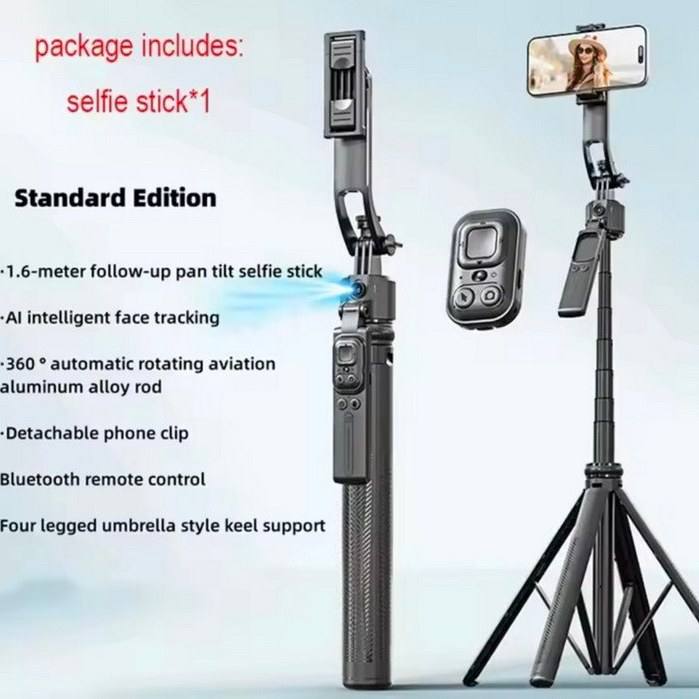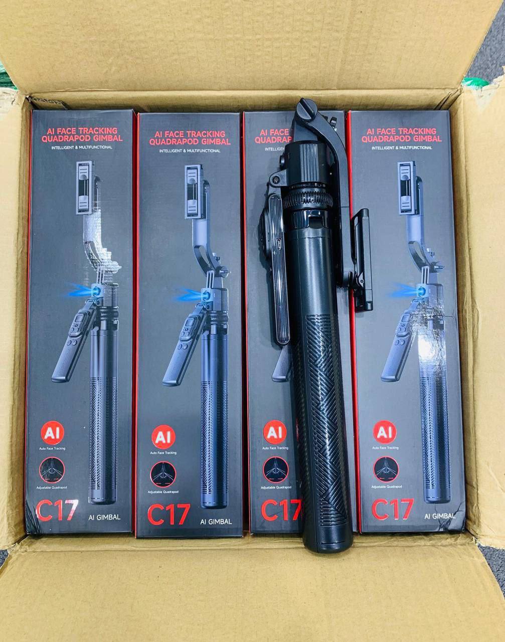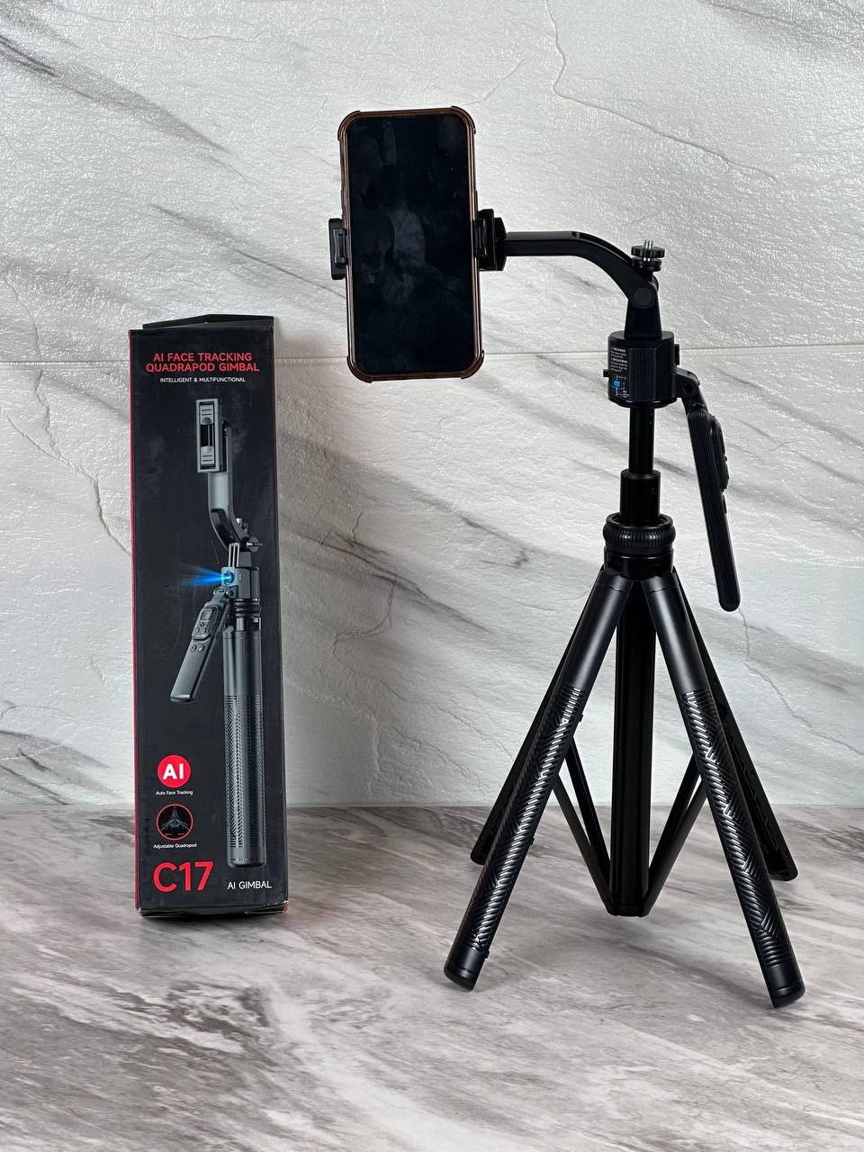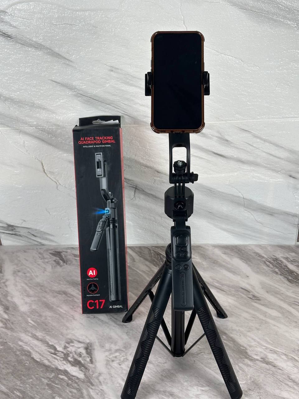 مونوپاد و گیمبال چهار پایه Ai face C17 مجهز به هوش مصنوعی، گیمبال هوش مصنوعی ، استابلایزر ( استبلایزر ) و لرزش گیر فیلم (قابلیت ردیابی چهره)/ ارسال فوری به سراسر کشور